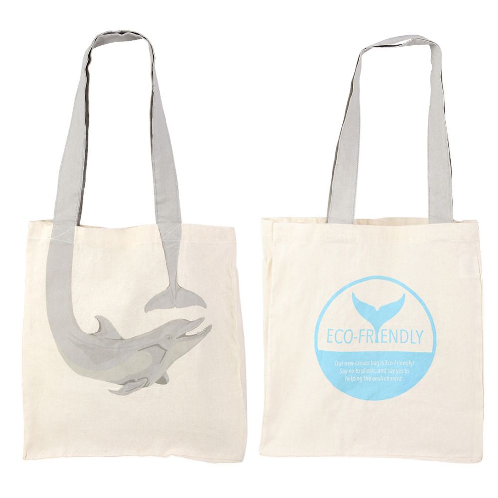 16" Dolphin Tail Eco-Friendly Canvas BagEach piece with hang tagGreat for beaches and daytripsTote handles for easy carry1 piece per order/unit