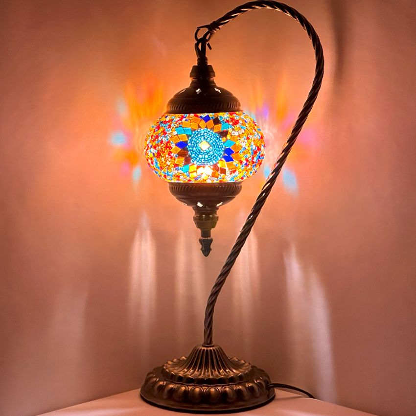 The swan-neck design of the lamp adds a touch of elegance to the overall shape while also providing a beautiful curvature that highlights the intricate details of the sunflower design. When illuminated, this lamp emits a soft, warm glow that fills the room with a sense of calm and relaxation.