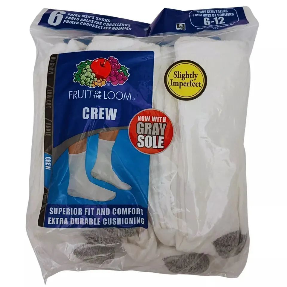 These classic Fruit of the Loom Men's White Crew Socks offer the perfect blend of comfort and durability. Designed for everyday wear, these socks feature a reinforced heel and toe for added longevity. The soft, breathable fabric keeps your feet cool and dry, while the comfortable fit ensures all-day comfort.