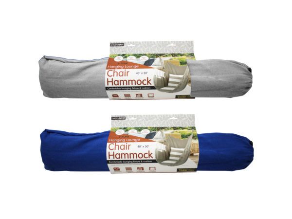 Add to WishlistHang out in style and comfort with this 40" x 50" Hanging Lounge Chair Hammock. Featuring durable woven material, this chair will style up an indoor or outdoor lounging space. Includes 2 plush cushions and a pocket to store your book, phone, tablet, remote control, and more! This lounging fixture is easy to put together and install using the provided rope to secure the hammock chair to a load-bearing structure. Includes hammock, suspension loops, and wood pole. Weight capacity is 350 pounds. Comes in assorted colors grey/white and blue/white. This lawn and garden must-have comes packaged with a portable drawstring bag and heavy-duty wrap hanging card.,40" x 50" Hanging Lounge Chair Hammock,