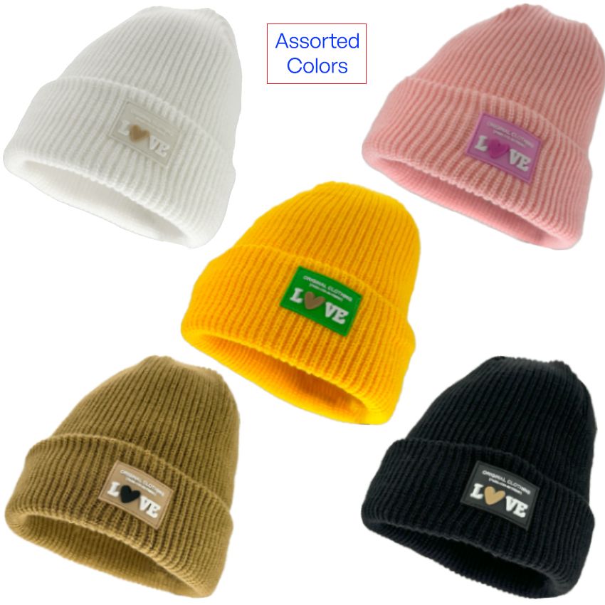 Introducing our latest collection of Ribbed Beanies with LOVE Logo - a vibrant mix of style and comfort. This assortment comes in an array of colors including black, white, yellow, pink, and coffee, ensuring a match for every taste. Sold in sets of a dozen, these beanies are perfect for retailers or anyone looking to purchase bulk winter beanies.