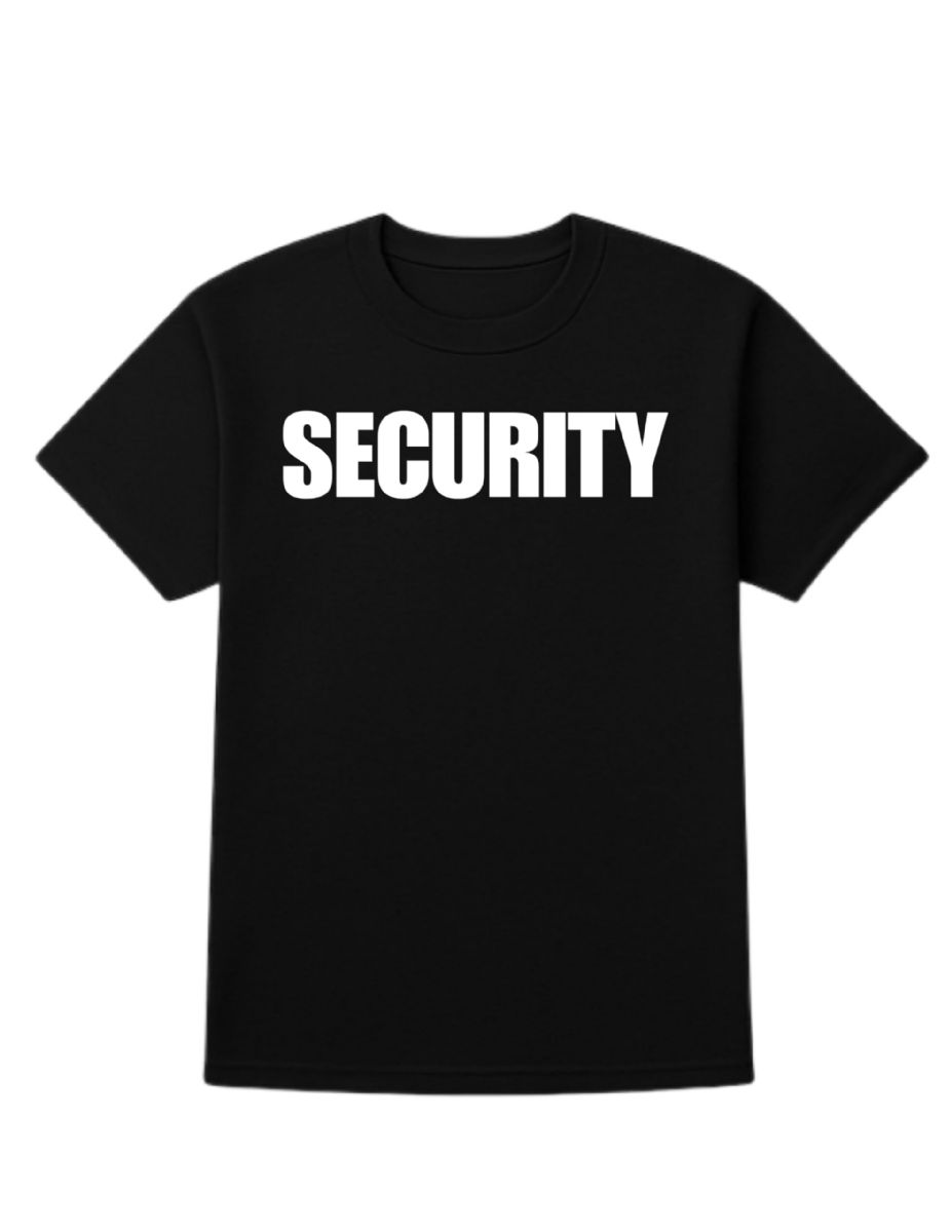 24 Pieces of Unisex Cotton Security Printed T Shirt Black With White Print Back And Front Size Small