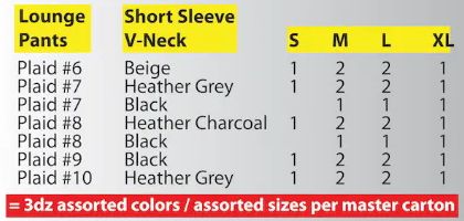 Men's Knitted Loungewear Sets. Short Sleeve jersey V-neck top. Yarn dyed woven Bottom. Assorted plaid colors. Soft breathable fabric-machine washable. Bulk Value Pack