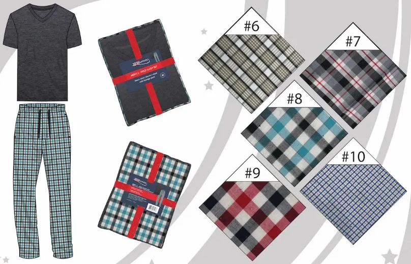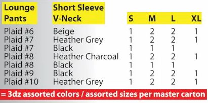 Men's Knitted Loungewear Sets. Short Sleeve jersey V-neck top. Yarn dyed woven Bottom. Assorted plaid colors. Soft breathable fabric-machine washable. Bulk Value Pack