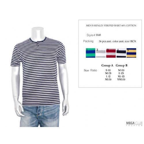 Add to WishlistThis men's Henley striped shirt offers a stylish and comfortable casual wear option. The shirt features a classic Henley design with a button-up placket and is made from a soft 60% cotton blend fabric.