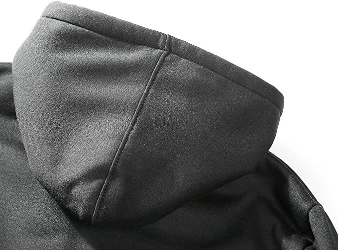 Heavy duty front zipper, drawstring hood, front kangaroo-style pockets. Fleece blend interior for cold weather.