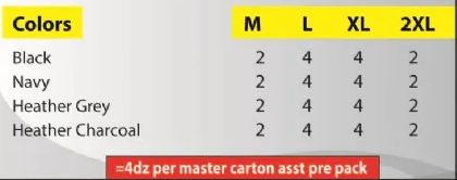 4 Classic Colors Black, Navy, Heather Gray and Heather Charcoal