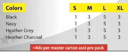4 Classic Colors Black, Navy, Heather Gray and Heather Charcoal
