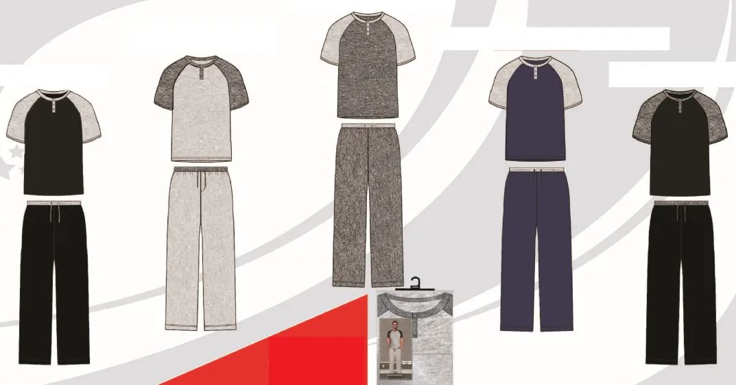 Men's Knitted 2 Tone Jersey Henley Short Sleeve Crew Neck Top & Long Pants Bottom Pajama Set. Assorted colors. Soft breathable fabric-machine washable. Bulk Value Pack