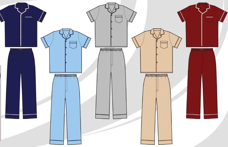 Men's Short Sleeve , Long Leg Solid Color Pajama Set. Button down top with front pocket. Elastic waist bottom. Soft breathable fabric-machine washable. Bulk Value Pack