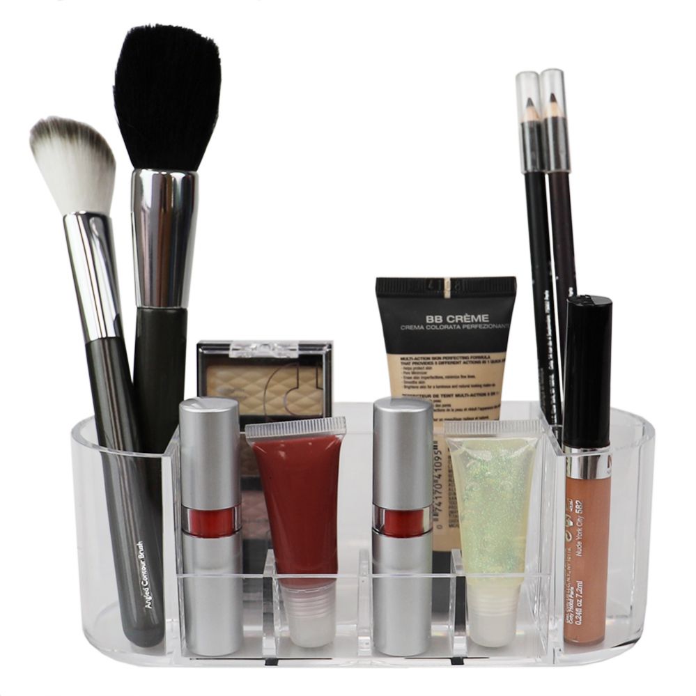 Add to WishlistBecause it takes too much time to rummage through cluttered drawers to find your make up must-haves and beauty essentials to get you looking your best from head-to-toe. Speed-up your morning routine, by having your personal grooming tools right at your fingertips with this medium size plastic cosmetic organizer. The clear acrylic construction lets you effortlessly view what you need while also coordinating perfectly with any bathroom decor. With an oval shape, enjoy having your own personalized beauty counter. Fill each space with nail polish, a small lotion bottle eye shadow, foundation, jewelry, and small accessories, and more. You don't have to sacrifice fashion for space, clear the clutter and enjoying having your own personalized beauty counter right at home with this multi-purpose organizer.