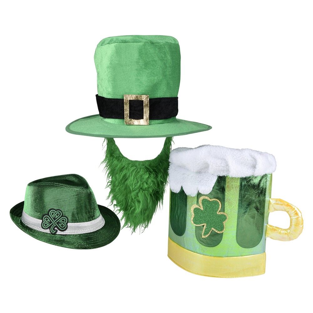 Assorted St. Patrick's themed hats Assortments may vary Perfect accessories for St. Patrick’s Day parties and celebrations Sold by the dozen in a poly bag