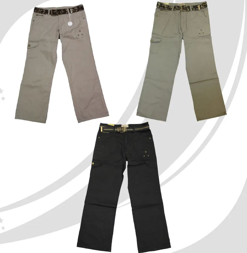 48 Pieces of Womens Cargo Pants With Novelty Belt Assorted Sizes 4-14 Olive