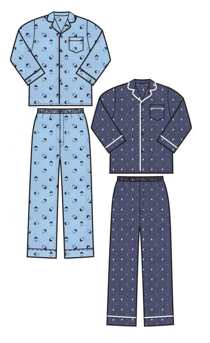 48 Pieces of Mens Long Sleeve Long Leg Print Color Pajama Set Assorted Sizes M-2xl