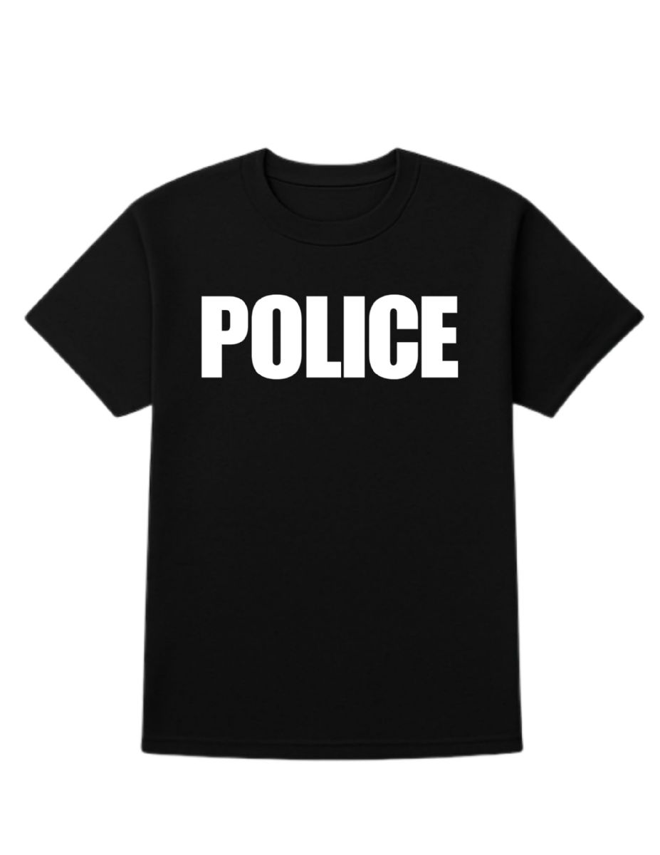24 Pieces of Unisex Cotton Police Printed T Shirt Black With White Print Back And Front Size Small