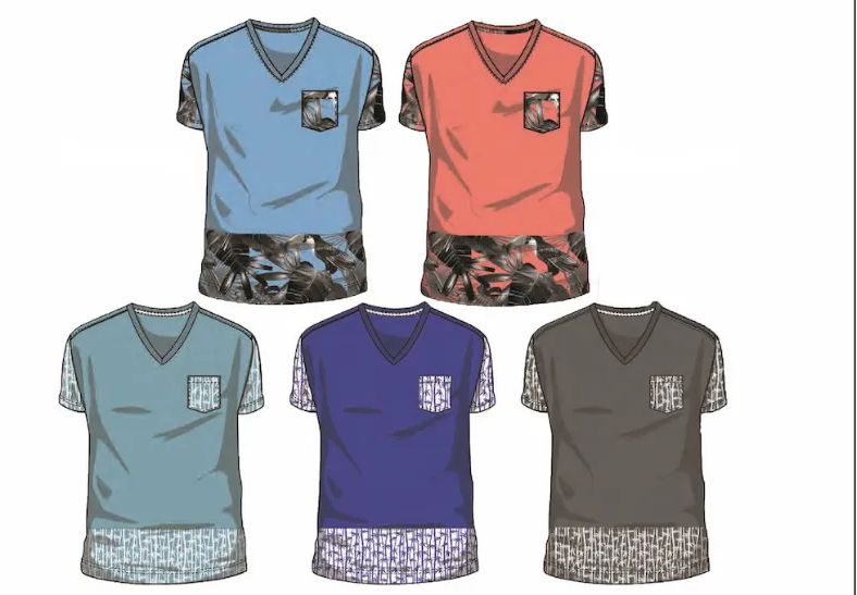 36 Pieces of Mens Aop V-Neck Pocket T-Shirt Assorted Colors And Sizes