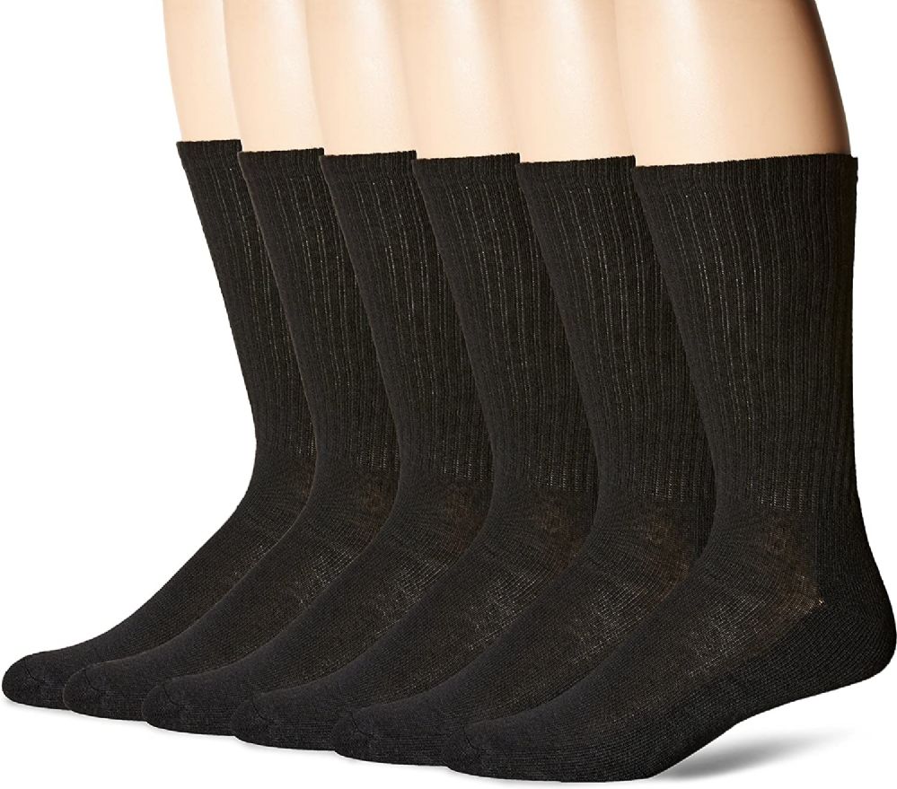 900 Pairs of Hanes Mens Black Cushioned Crew Socks, Shoe Size 6-12