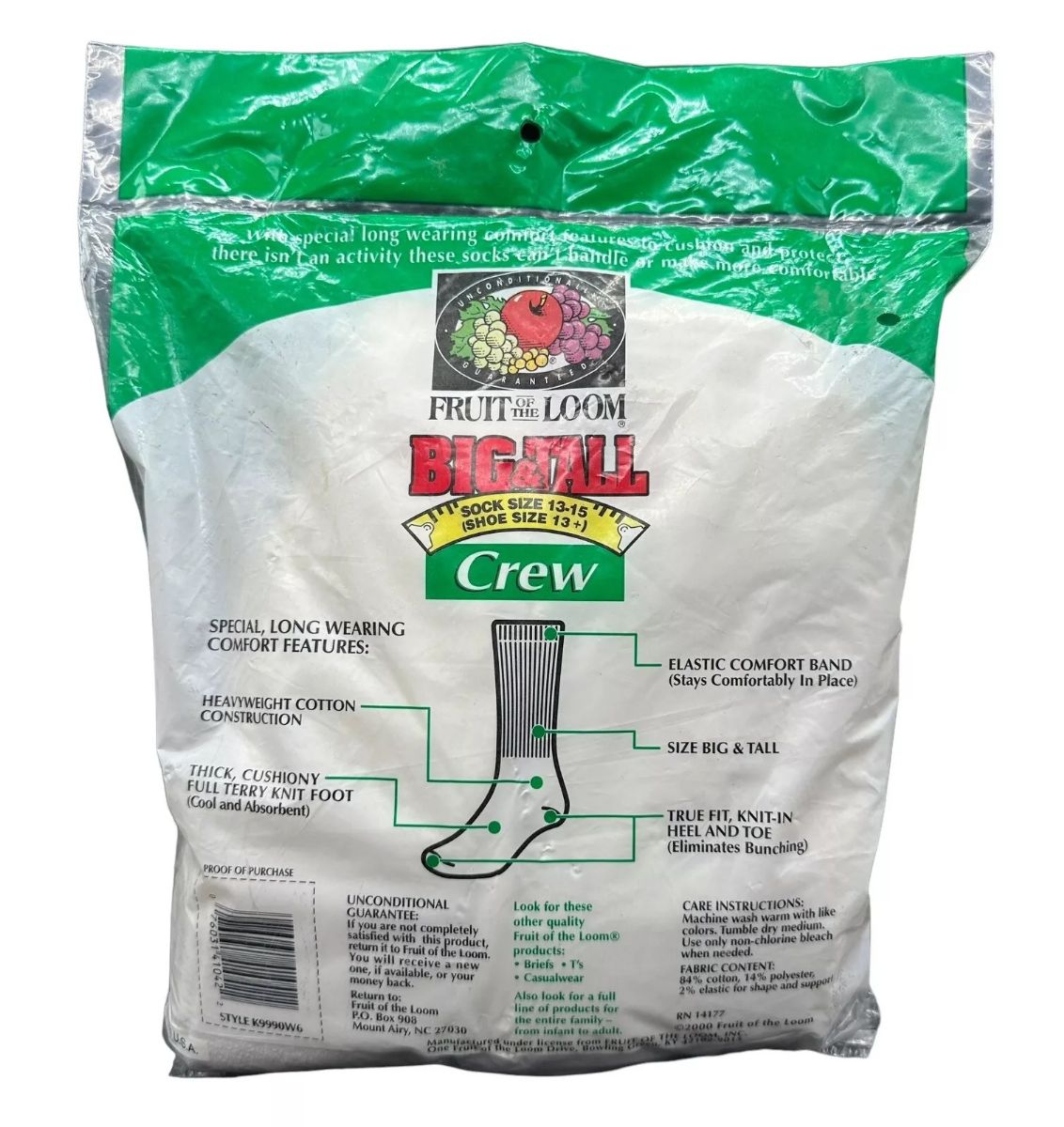 These classic Fruit of the Loom King Size Men's White Crew Socks offer the perfect blend of comfort and durability. Designed for larger feet, these socks feature a reinforced heel and toe for added longevity. The soft, breathable fabric keeps your feet cool and dry, while the comfortable fit ensures all-day comfort.